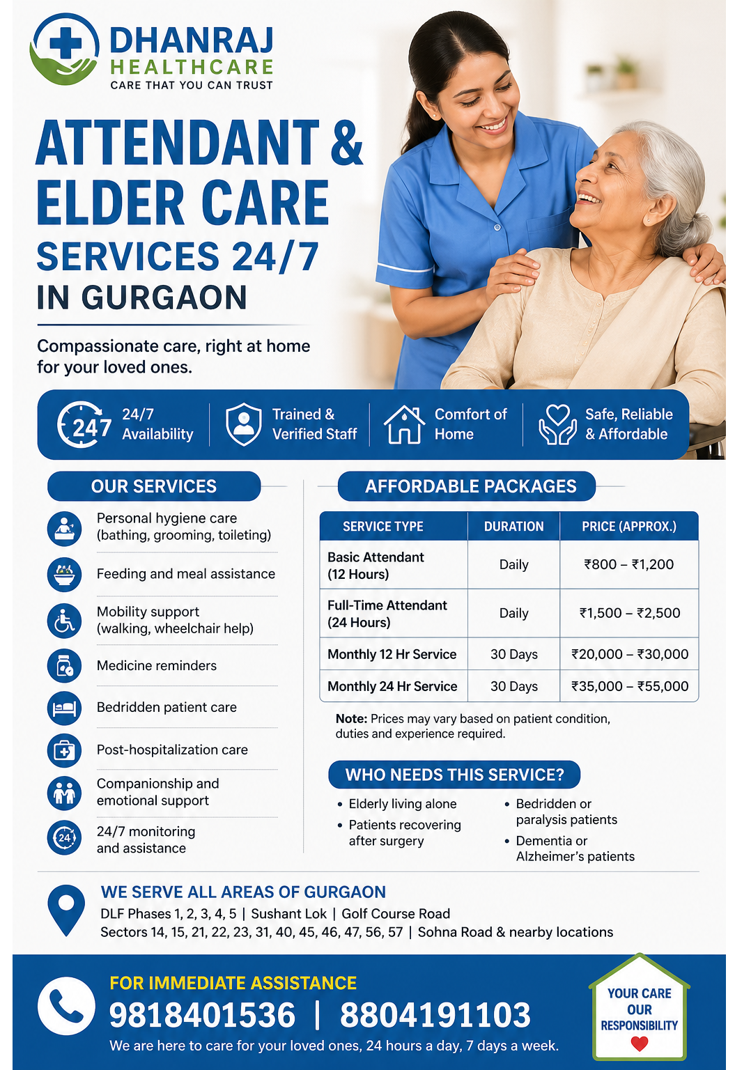 24/7 Elder Care & Attendant Services in Gurgaon