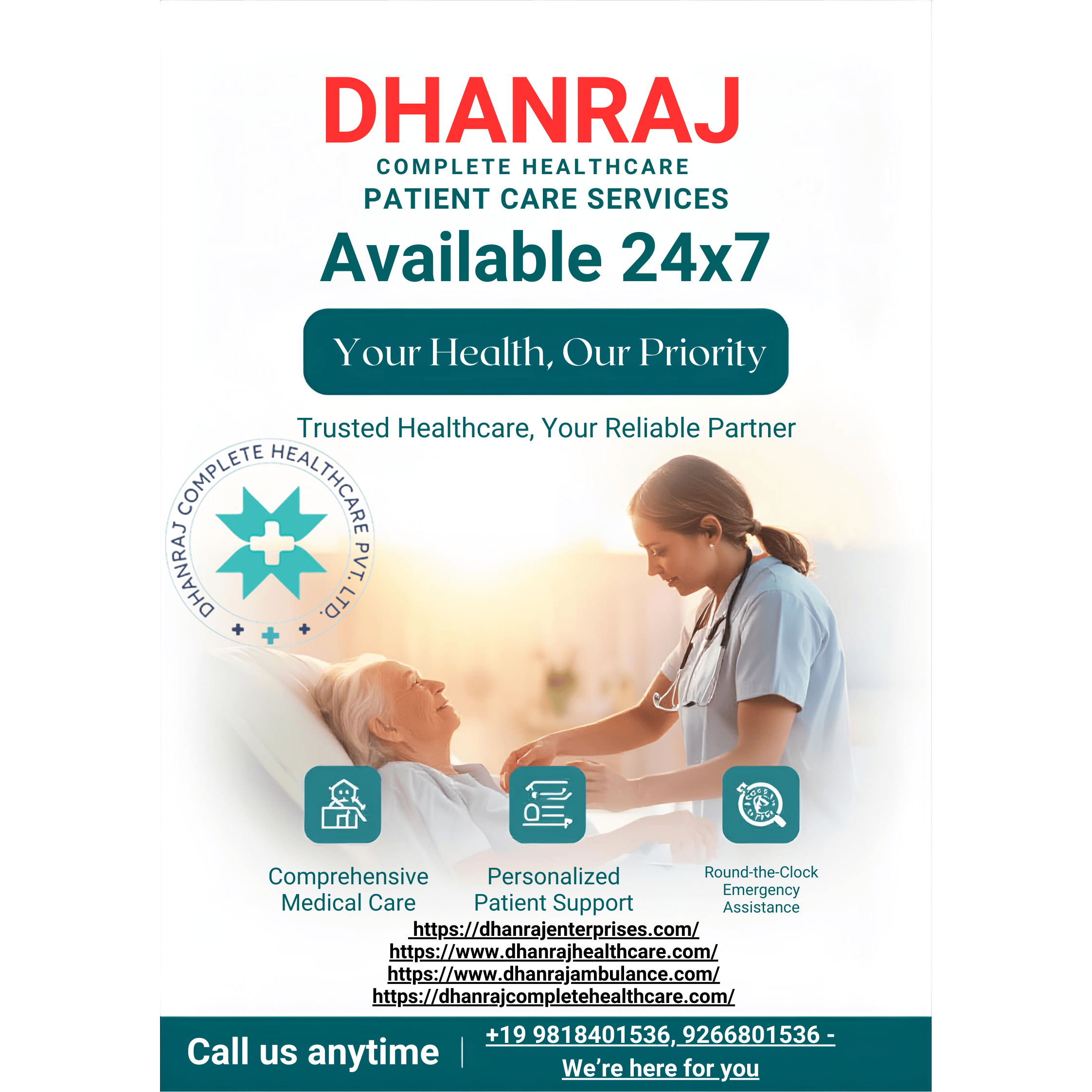 Choose Dhanraj Healthcare for safe, reliable, and life-saving medical services at home. Your health is our priority, and your care is our responsibility.